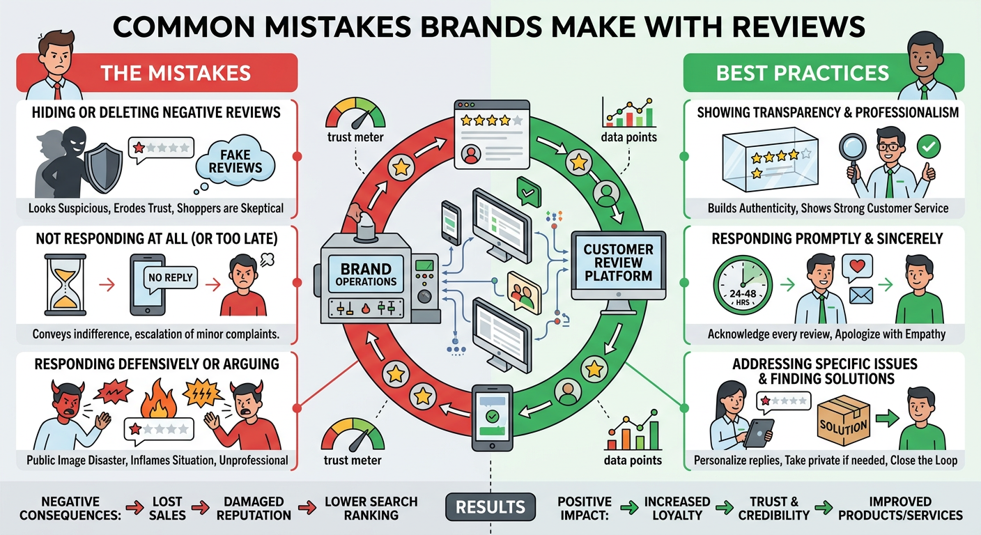 Customer reviews can accelerate brand growth—but only if managed correctly. Many businesses unintentionally damage their reputation by mishandling feedback. Understanding these common mistakes can help brands protect trust and maximize the value of reviews.